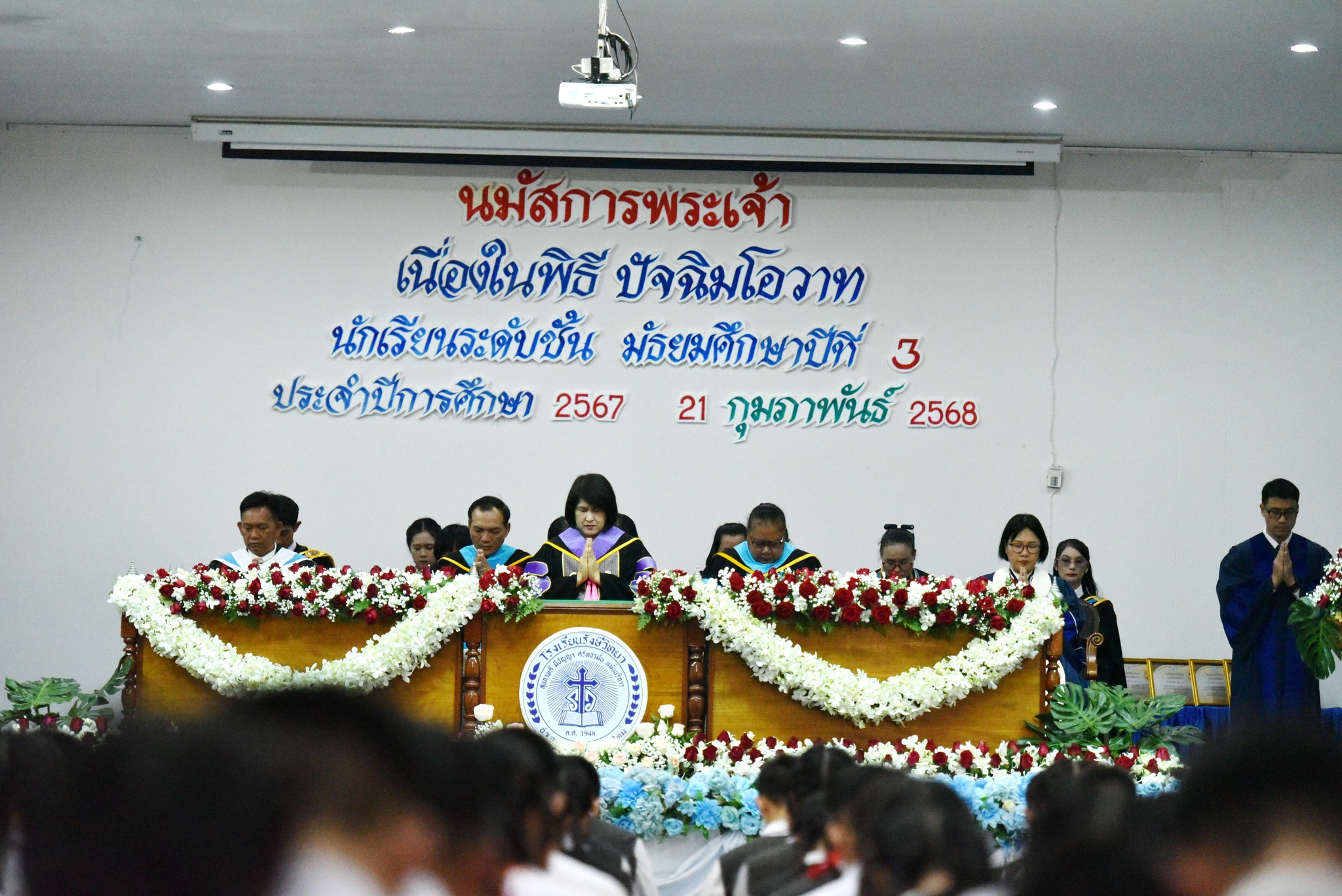 โรงเรียนรังษีวิทยา จัดพิธีปัจฉิมโอวาท นักเรียนในระดับชั้นมัธยมศึกษาปีที่ 3 ปีการศึกษา 2567 โดยมี ดร.อรวรรณ กัลชาญพิเศษ ผู้อำนวยการ เป็นประธานในพิธี กล่าวให้โอวาทและมอบเกียรติบัตรให้กับนักเรียน ณ หอประชุมอินสอน โรงเรียนรังษีวิทยา วันที่ 21 กุมภาพันธ์ 2568