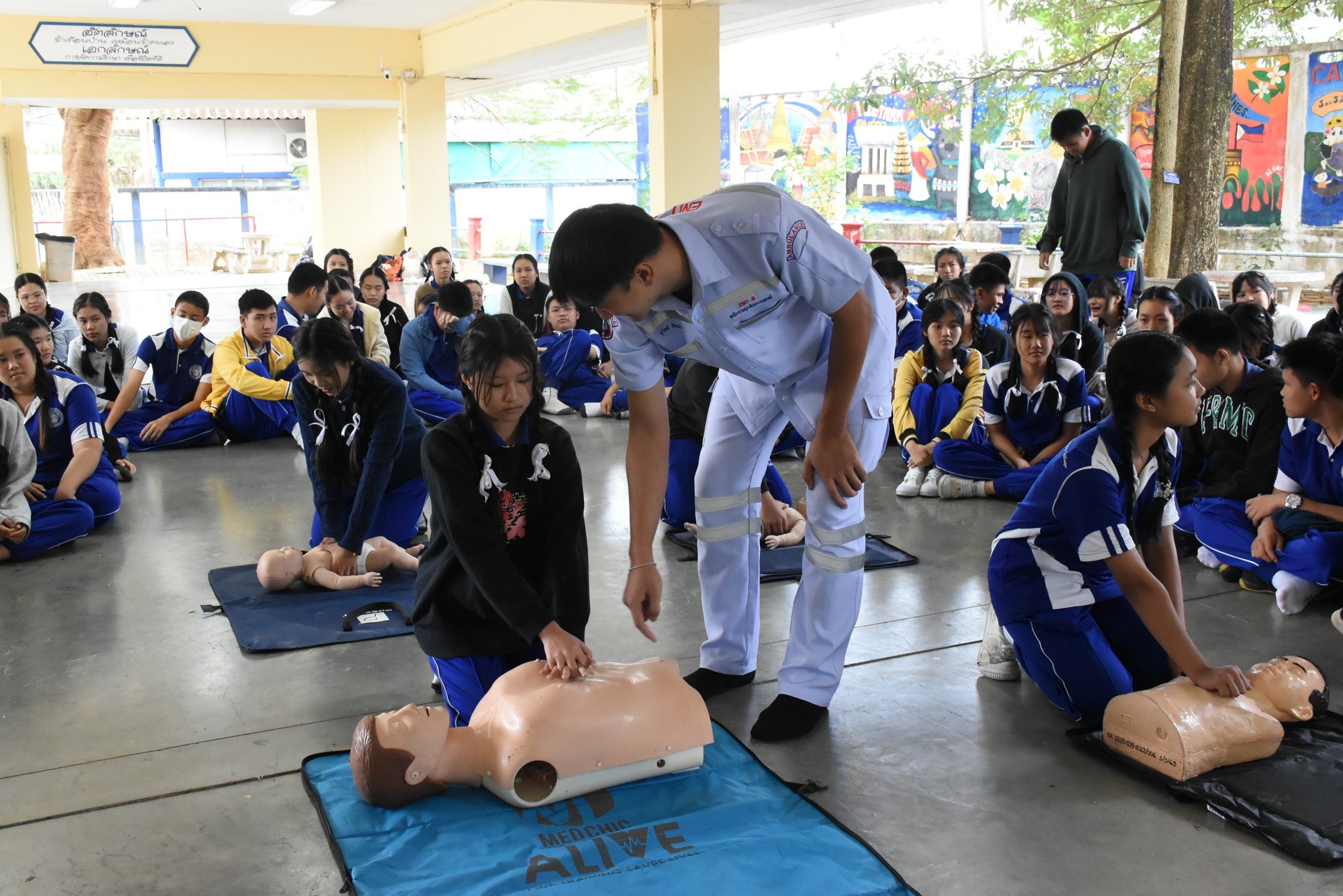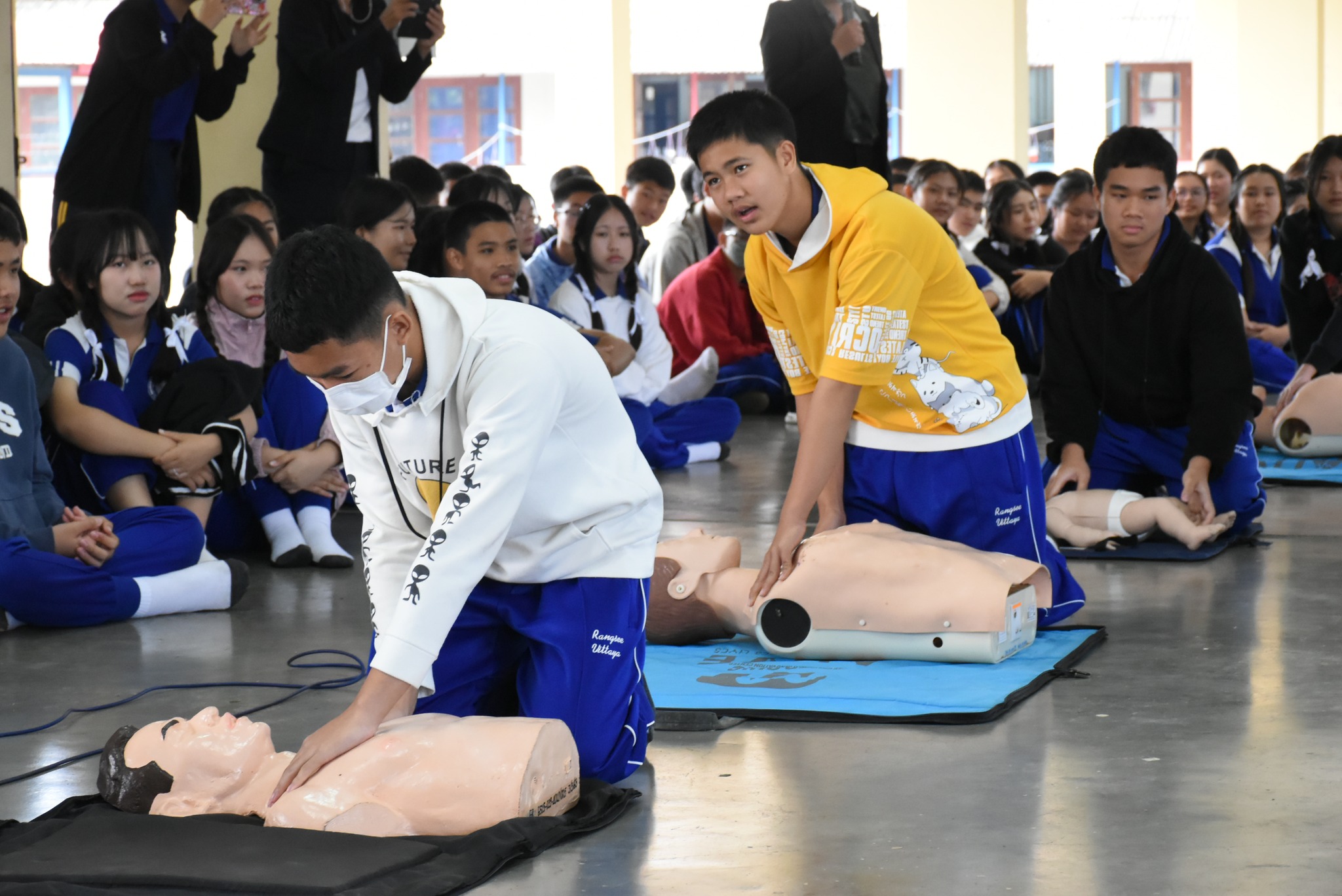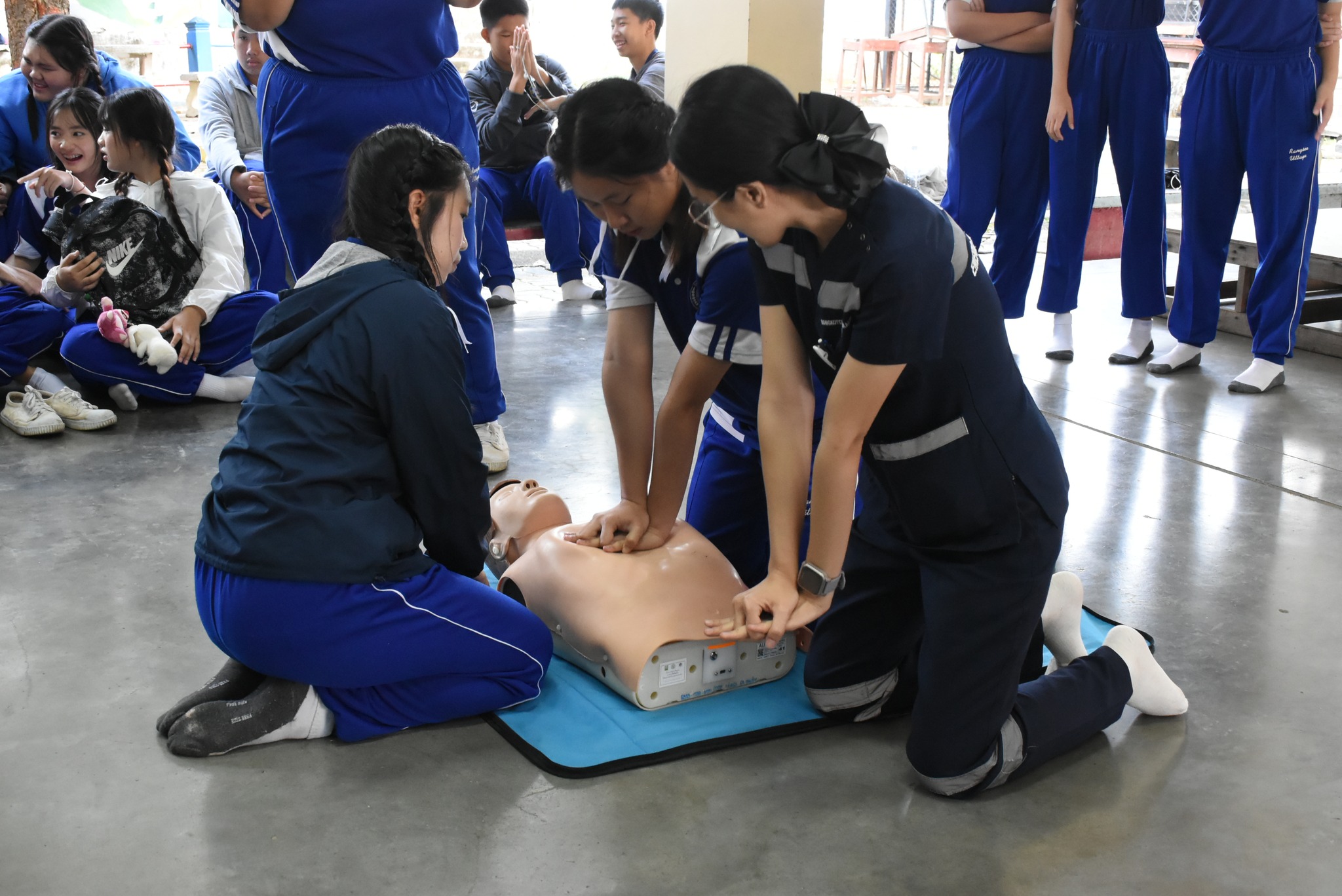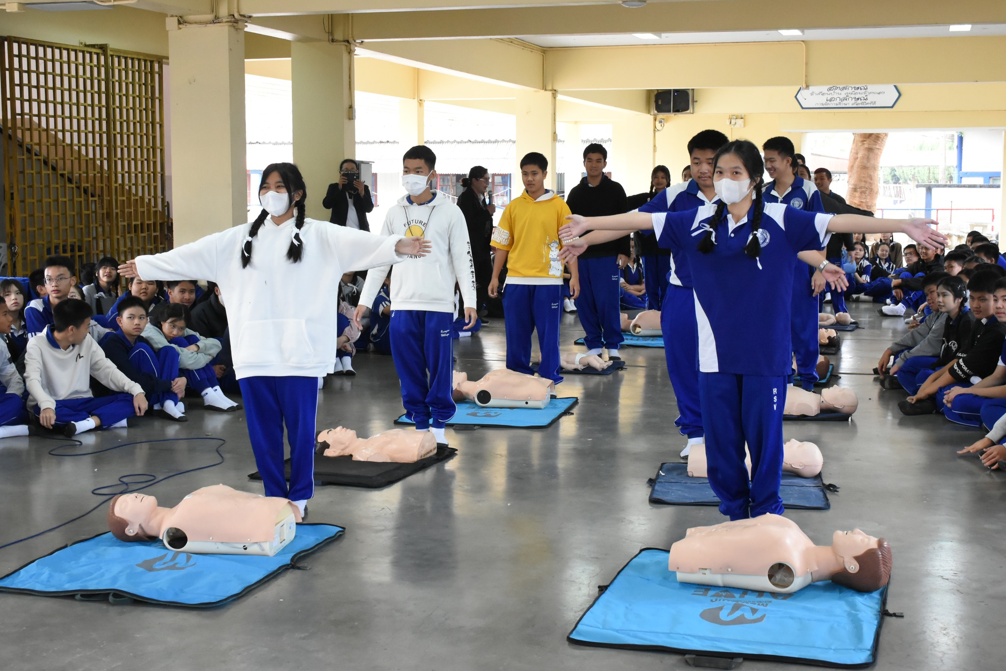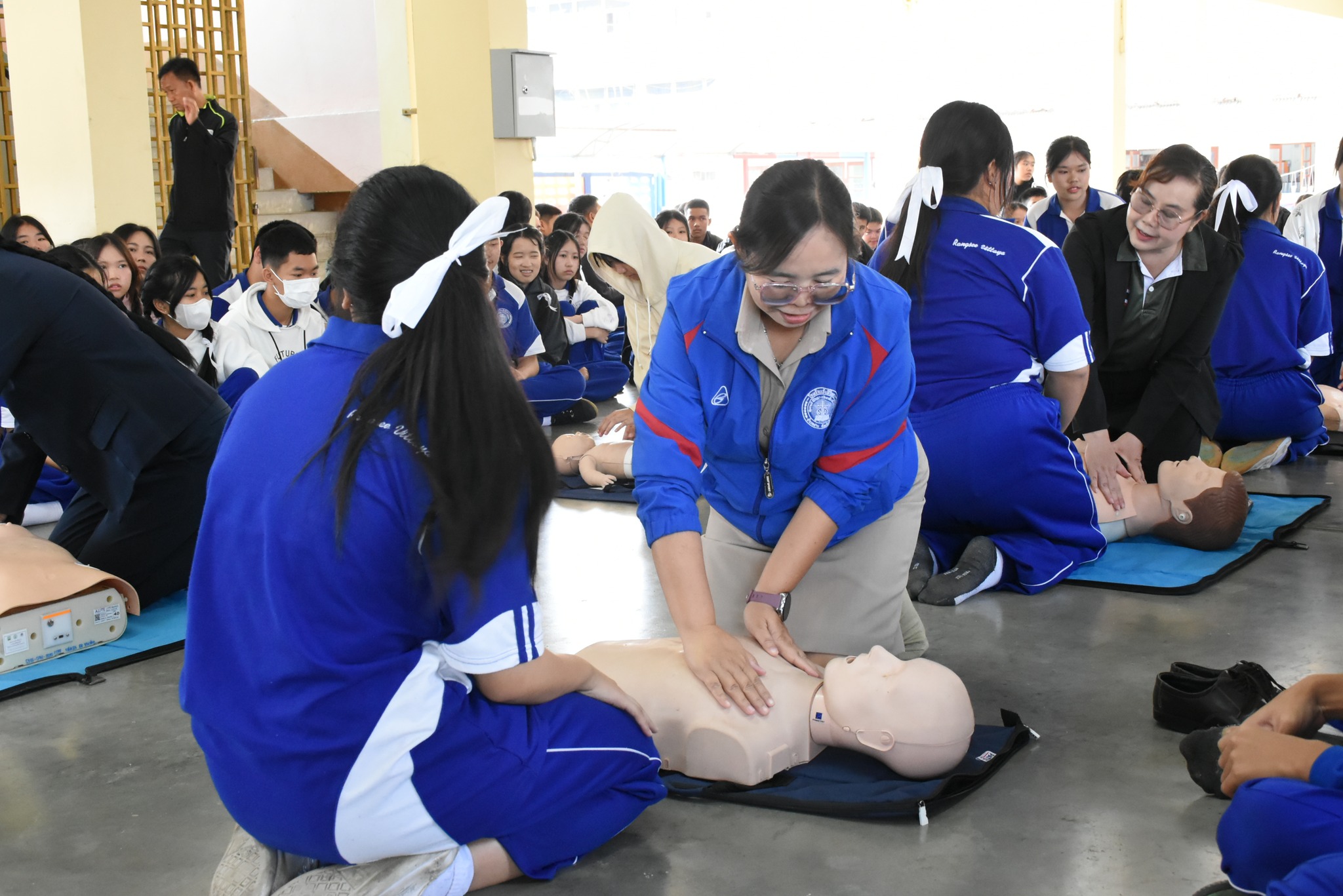 โรงเรียนรังษีวิทยา จัดโครงการอบรมช่วยฟื้นคืนชีพ (การทำ CPR) และการปฐมพยาบาลเบื้องต้น โดยมี ดร.กาญจนา รัตนไพบูลย์ ผช.ผอ.ฝ่ายวิชาการและประกันคุณภาพ เป็นประธานในพิธี กล่าวรายงานโดย อ.กุลยารัศมิ์ คณะยุทธพงศ์ หัวหน้ากลุ่มสาระสุขศึกษาพลศึกษา ระดับมัธยมศึกษาโดยเชิญ คุณกมลวรรณ คำอ้าย นักฉุกเฉินการแพทย์ และคุณบงกชพร หน่อแก้ว พยาบาลเวชศาสตร์ฉุกเฉิน จากโรงพยาบาลฝาง มาร่วมเป็นวิทยากรให้ความรู้ให้กับนักเรียนในระดับชั้นมัธยมศึกษาปีที่ 3 และตัวแทน อย น้อย มัธยมศึกษาปีที่ 4 โดยมีการอบรมให้ความรู้และวิธีการปฏิบัติการช่วยเหลือเมื่อเกิดเหตุฉุกเฉิน ฝึกปฏิบัติการทำ CPR และการปฐมพยาบาล การช่วยการสำลักอาหารหรืออาหารติดหลอดลม ณ โรงเรียนรังษีวิทยา เมื่อวันที่ 26 กุมภาพันธ์ 2568