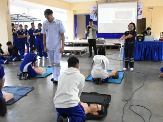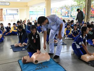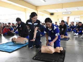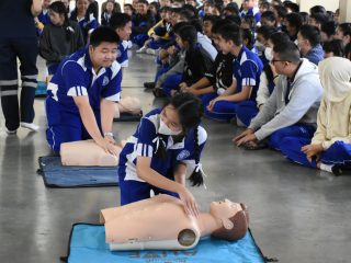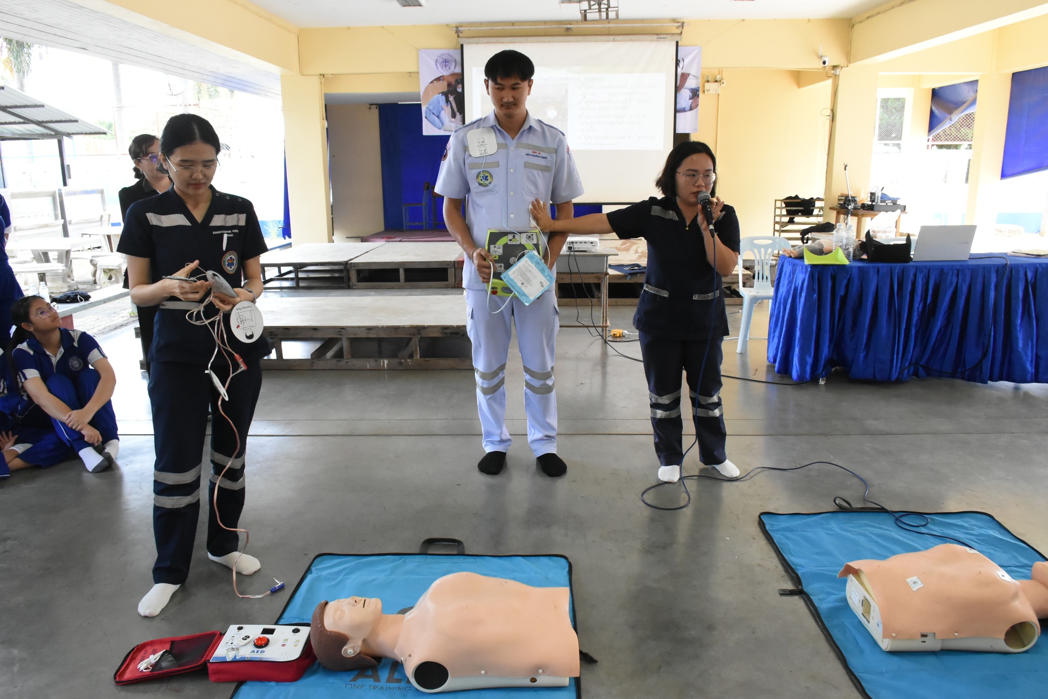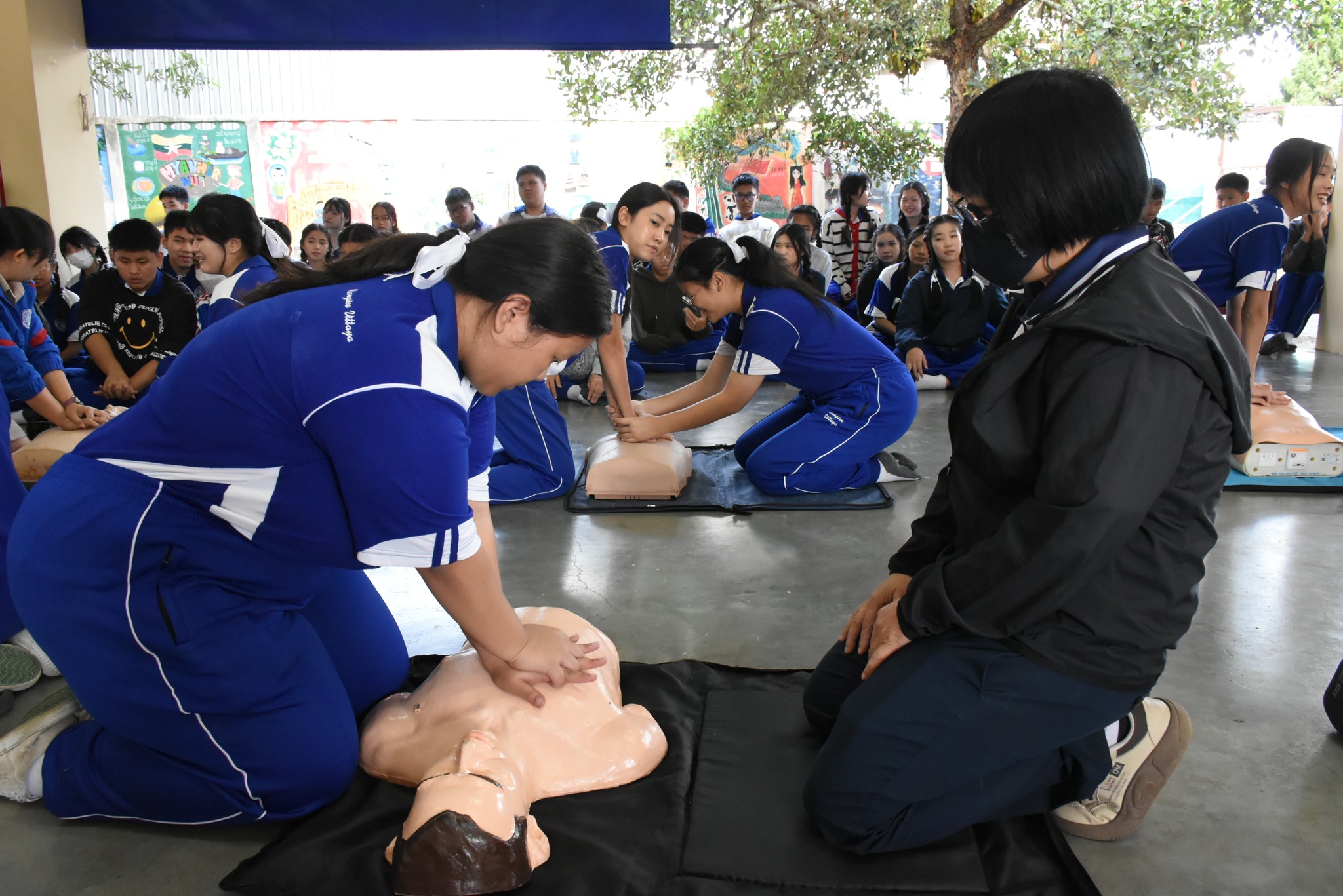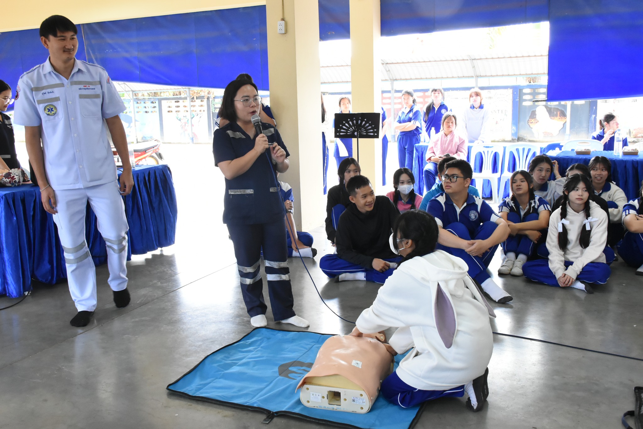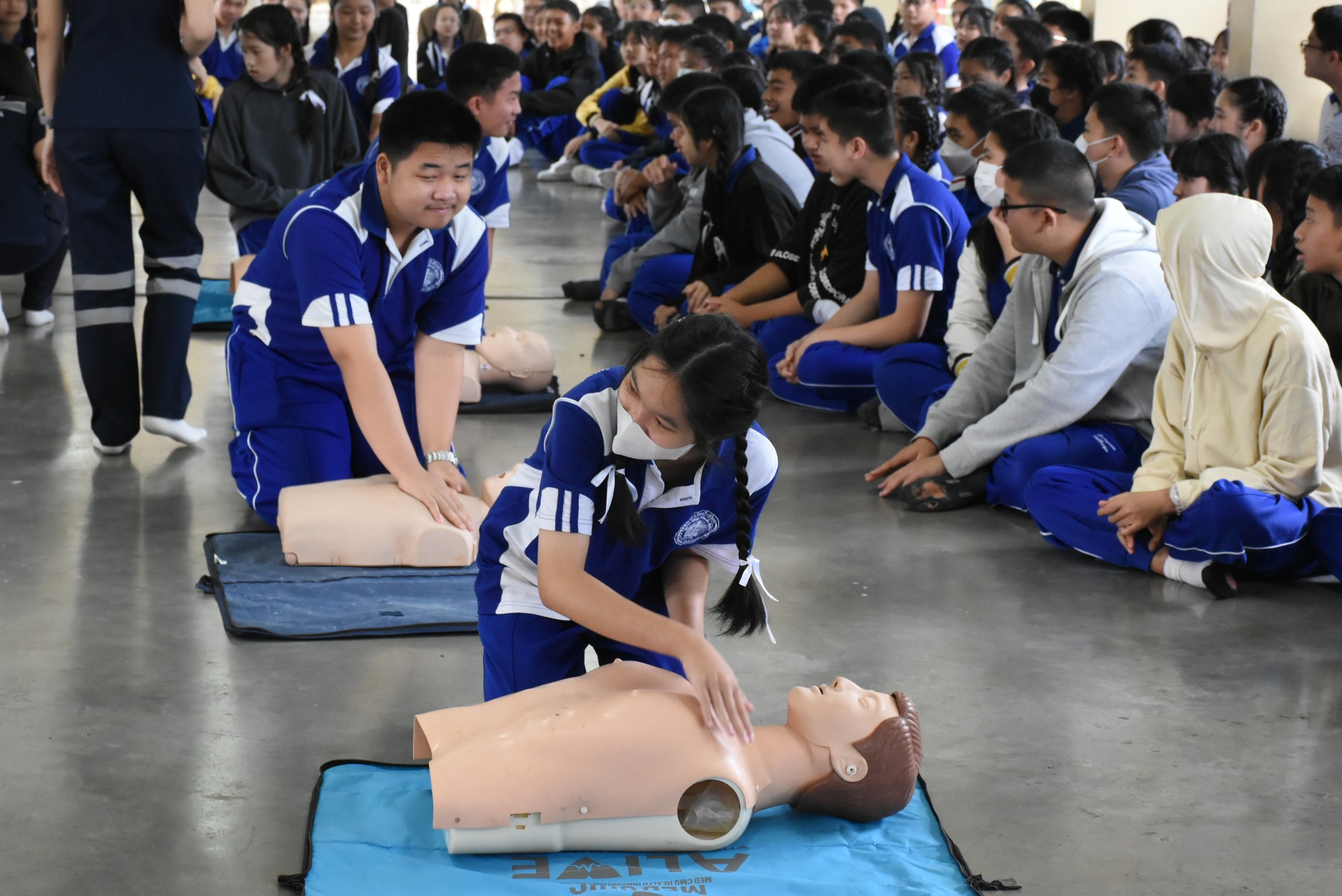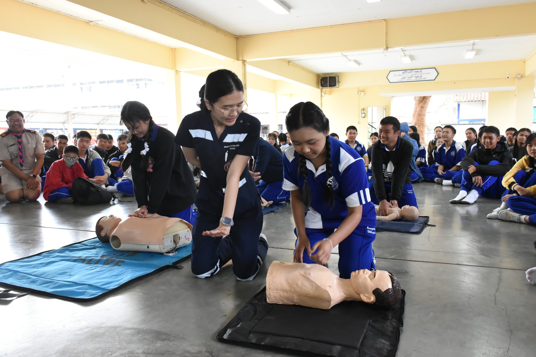 โรงเรียนรังษีวิทยา จัดโครงการอบรมช่วยฟื้นคืนชีพ (การทำ CPR) และการปฐมพยาบาลเบื้องต้น โดยมี ดร.กาญจนา รัตนไพบูลย์ ผช.ผอ.ฝ่ายวิชาการและประกันคุณภาพ เป็นประธานในพิธี กล่าวรายงานโดย อ.กุลยารัศมิ์ คณะยุทธพงศ์ หัวหน้ากลุ่มสาระสุขศึกษาพลศึกษา ระดับมัธยมศึกษาโดยเชิญ คุณกมลวรรณ คำอ้าย นักฉุกเฉินการแพทย์ และคุณบงกชพร หน่อแก้ว พยาบาลเวชศาสตร์ฉุกเฉิน จากโรงพยาบาลฝาง มาร่วมเป็นวิทยากรให้ความรู้ให้กับนักเรียนในระดับชั้นมัธยมศึกษาปีที่ 3 และตัวแทน อย น้อย มัธยมศึกษาปีที่ 4 โดยมีการอบรมให้ความรู้และวิธีการปฏิบัติการช่วยเหลือเมื่อเกิดเหตุฉุกเฉิน ฝึกปฏิบัติการทำ CPR และการปฐมพยาบาล การช่วยการสำลักอาหารหรืออาหารติดหลอดลม ณ โรงเรียนรังษีวิทยา เมื่อวันที่ 26 กุมภาพันธ์ 2568