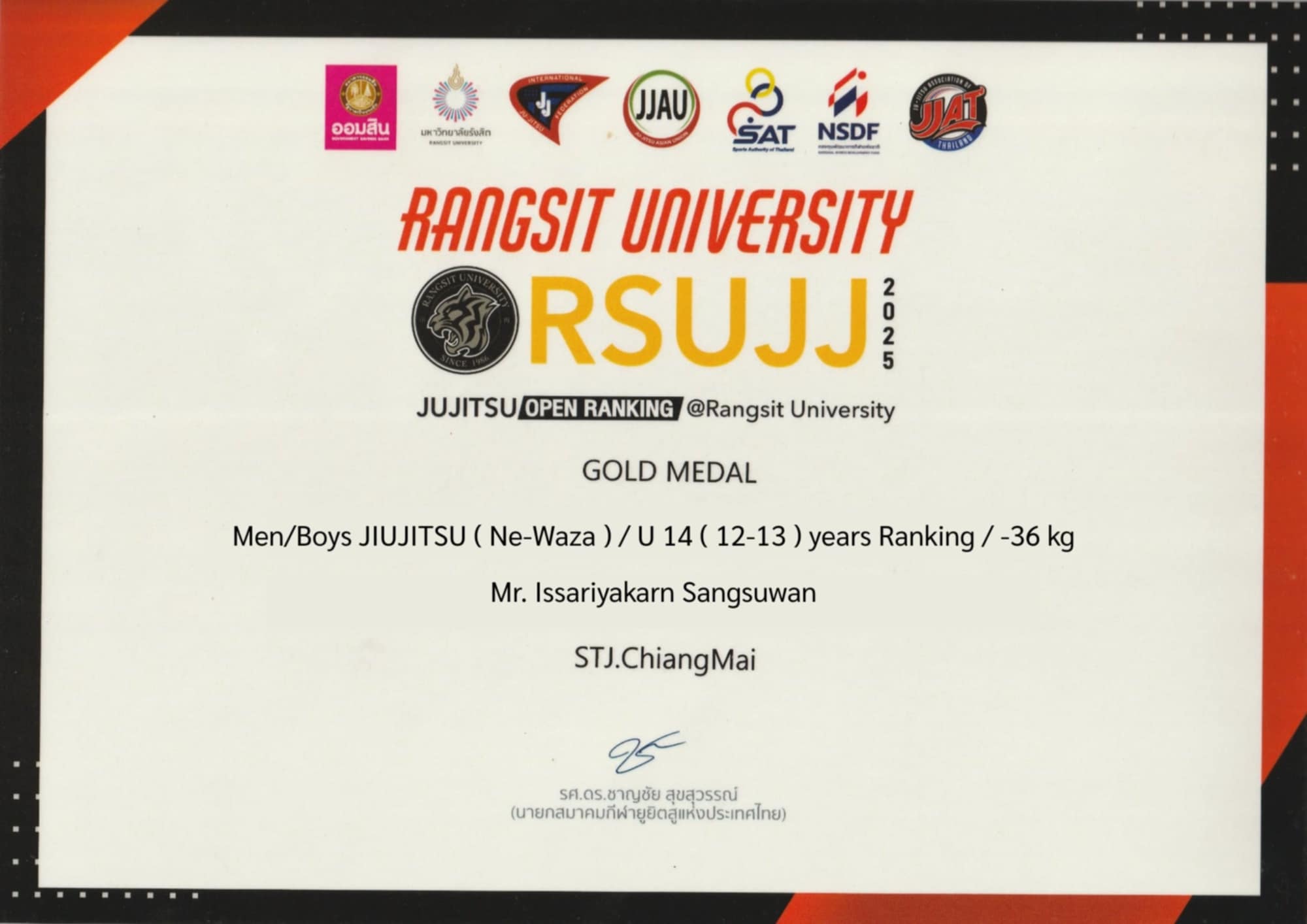 โรงเรียนรังษีวิทยา ขอแสดงความยินดีกับ ด.ช.อิสริยกาญน์ แสงสุวรรณ์ ที่ได้รับรางวัลในการแข่งขัน Ju-Jitsu RSU Championship 2025 รุ่นอายุไม่เกิน 14 ปี ณ. มหาวิทยาลัยรังสิต จังหวัดปทุมธานี ได้รับเหรียญทอง 2 รายการดังนี้