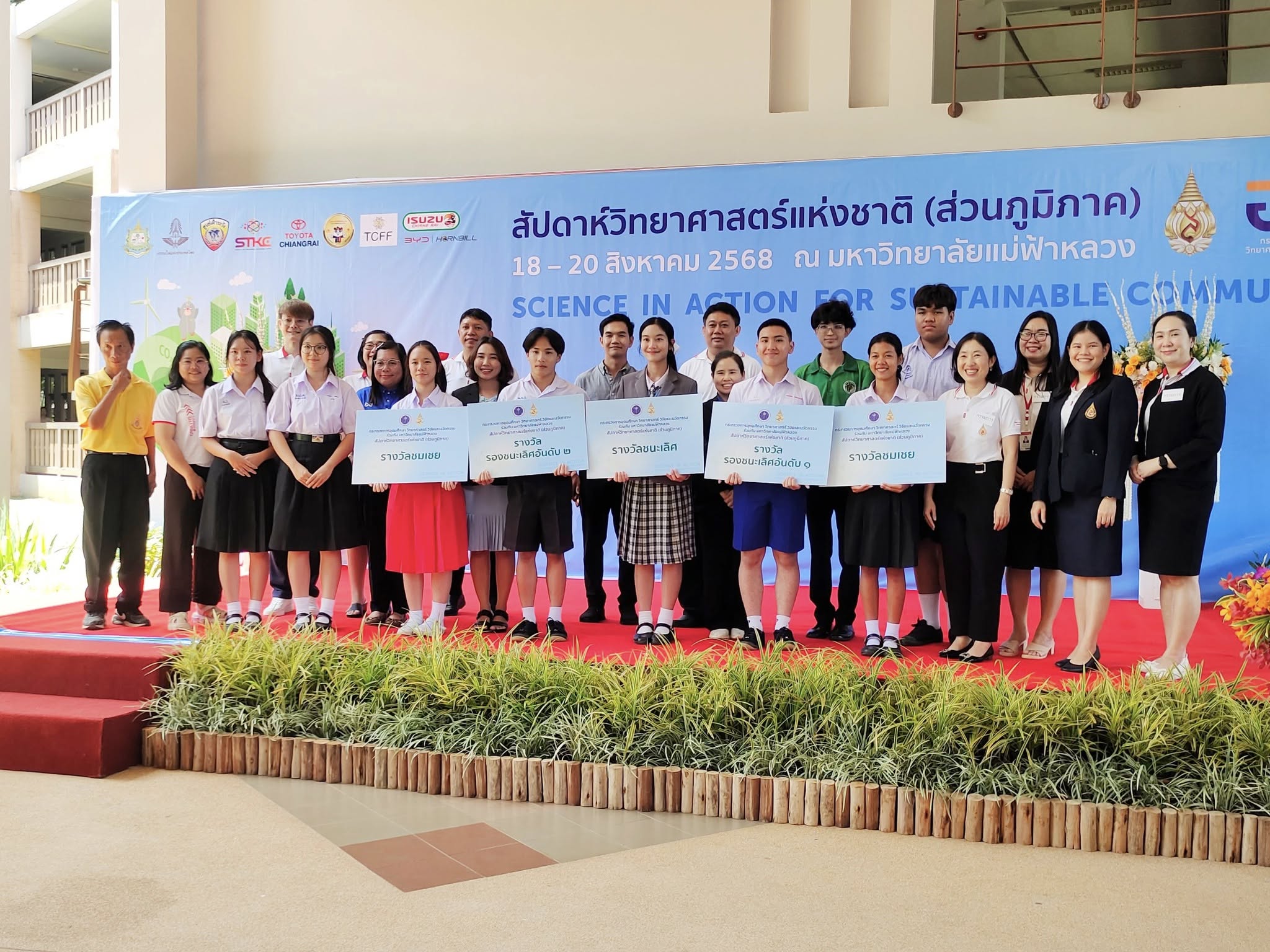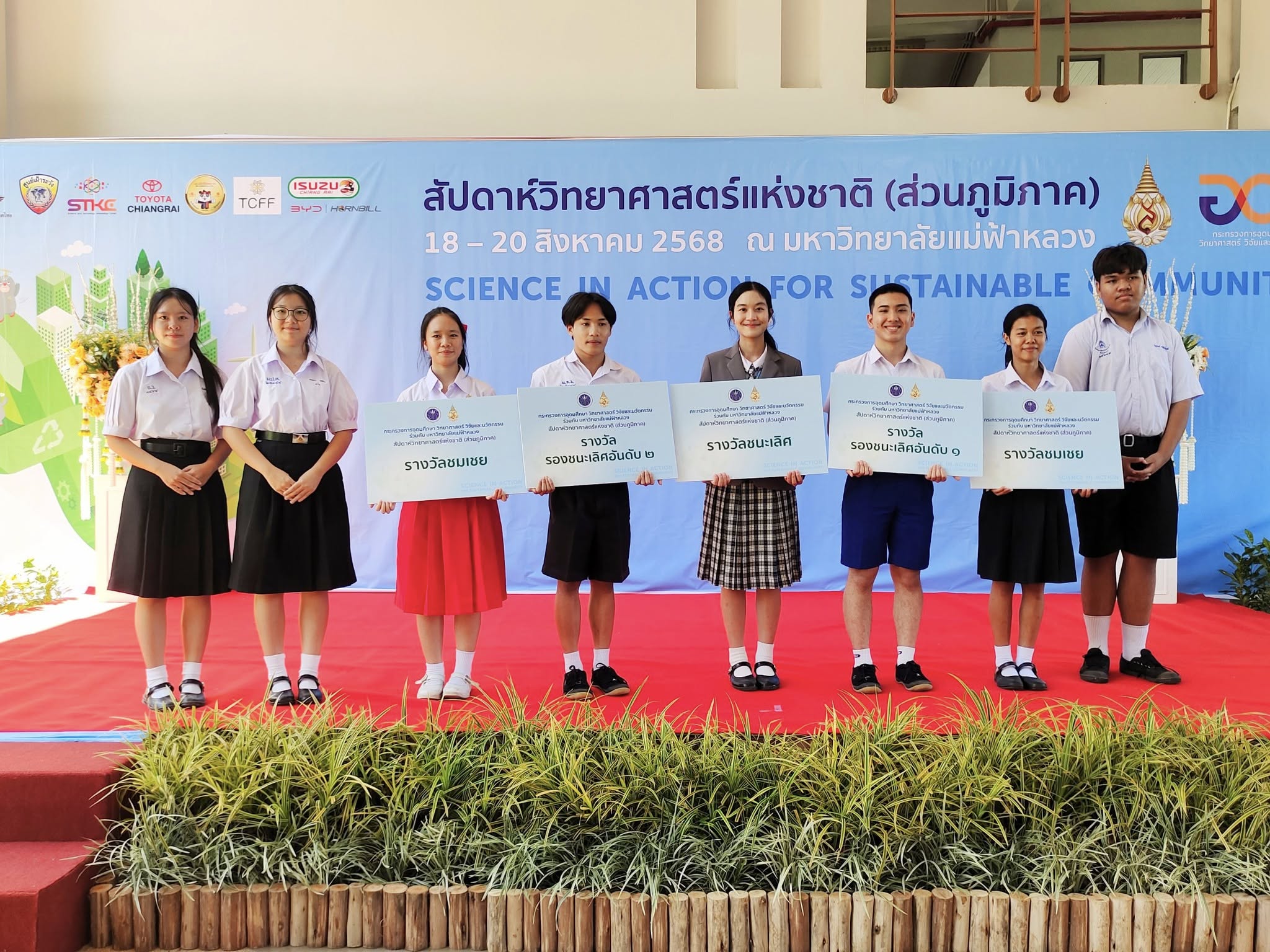 ขอแสดงความยินดีกับนักเรียนที่ได้รับถ้วยรางวัลการแข่งขันกล่าวสุนทรพจน์ หัวข้อ “วิทยาศาสตร์เทคโนโลยีก้าวไกลพัฒนาชาติไทยให้ยั่งยืน” ในงานสัปดาห์วิทยาศาสตร์แห่งชาติ(ส่วนภูมิภาค) ประจำปี 2568