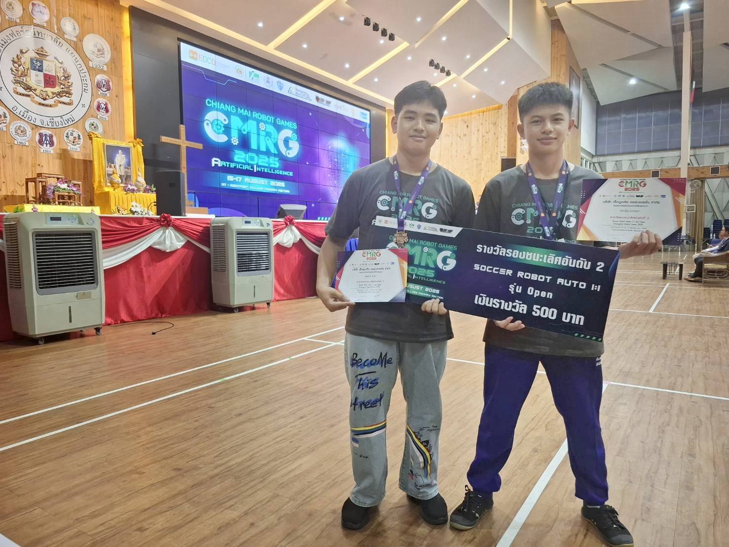 2. รายการหุ่นยนต์ฟุตบอลอัตโนมัติ 1 ต่อ 1 (Soccer Robot Auto 1*1) ได้รับรางวัลรองชนะเลิศอันดับ 2 แข่งโดยนายปธานิน ธรรมมาและนายนายพงศกร ธาดา ม.6/3