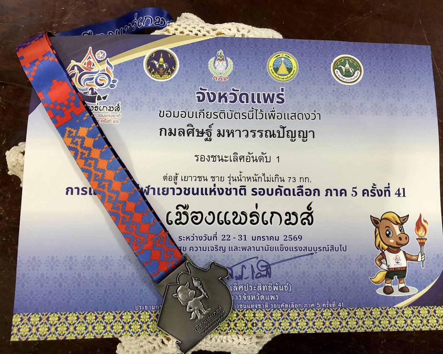 โรงเรียนรังษีวิทยา โดย ดร.อรวรรณ กัลชาญพิเศษ ผู้อำนวยการ ร่วมแสดงความยินดีและมอบเกียรติบัตรแก่เด็กชายกมลศิษฐ์ มหาวรรณปัญญา นักเรียนชั้น ม.3/1 ที่ได้รับรางวัลรองชนะเลิศอันดับ 1 จากการเข้าร่วมแข่งขันกีฬาเทควันโดรอบคัดเลือกตัวแทนภาค 5 จ.เชียงใหม่ ใน” กีฬาเยาวชนแห่งชาติ ครั้งที่ 41 เมืองแพร่เกมส์ ” วันศุกร์ที่ 29 มกราคม 2569 ณ โรงเรียนพิริยาลัย จ.แพร่ และยังสามารถคว้าตั๋วเข้าร่วมมหกรรมกีฬาสนามสุดท้ายรอบประเทศได้สำเร็จ เข้าร่วมแข่งขันกีฬาเยาวชนแห่งชาติ ครั้งที่ 41 ” สุราษฎร์ธานีเกมส์ ” ณ จังหวัดสุราษฎร์ธานี